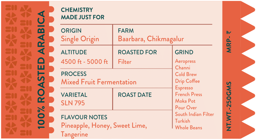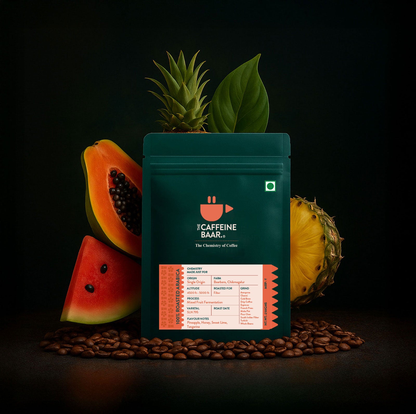 This nano-lot from Baarbara Estate showcases a unique mixed-fruit fermentation; where handpicked ripened cherries are washed in natural spring water and fermented alongside pineapple, papaya, and watermelon in stainless steel tanks. The process is closely monitored for pH and temperature to ensure consistency, with a 1:2 coffee-to-fruit ratio enhancing complexity. Once fermentation is complete, the pulped coffee is sun-dried on raised beds to achieve the perfect moisture level. The result is a lively, tropical coffee with notes of pineapple, honey, sweet lime, and tangerine; offering both brightness and balance in the cup. Our favourite lot this year - we also like to call it a Fruit Punch!